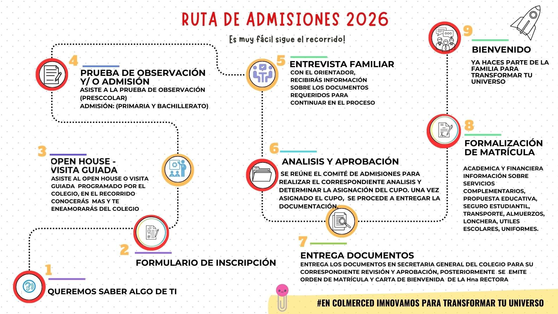 Entrega los documentos en Secretaria General del colegio para su correspondiente revisión y aprobación. Posteriormente se emite orden de matrícula. y *Carta de bienvenida a cargo de la Hna. Rectora.
